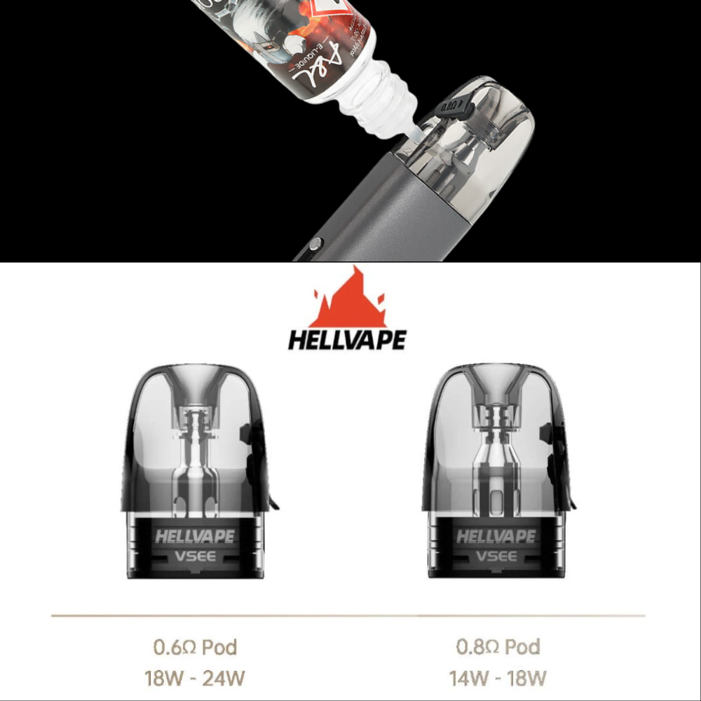 - Replacement cartridges compatible with the pod VSEE One by Hellvape.